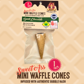 Infused with authentic bubble hash, these mini cones come in Cookies and Cream, Milk Chocolate, and Cookie Butter flavors. Available in singles or convenient ten packs, they deliver a bite sized treat with a big, delicious kick.